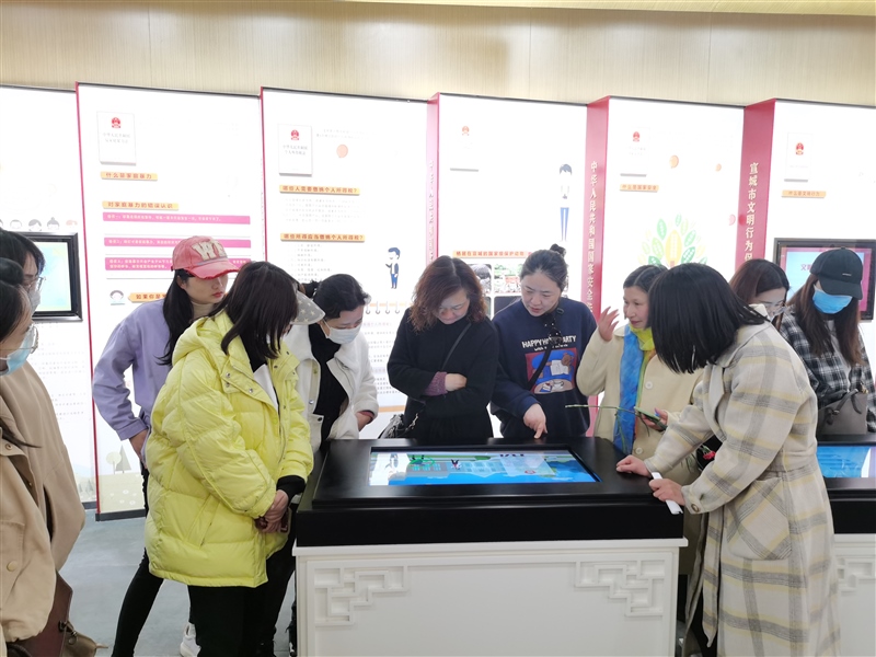 隨后,“娘子軍”們前往宣城宛陵湖法治文化館參觀。大家認(rèn)真聆聽講解員的講解,依次參觀了“尊法學(xué)法”“守法用法”“普法路上”三個展區(qū),現(xiàn)場學(xué)習(xí)了法治文化,觀看了宣城市普法宣傳片和法治故事短片,體驗了法治模擬場景。通過參觀學(xué)習(xí),進(jìn)一步增強(qiáng)了她們尊法學(xué)法守法用法意識,將法治觀念融入今后工作和生活中,做到廉潔從業(yè),依法履職。