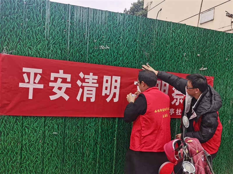 活動(dòng)中,志愿者與社區(qū)工作人員向居民發(fā)放倡議書,呼吁社區(qū)居民進(jìn)一步樹立“安全文明、綠色環(huán)!鼻迕骷漓胄嘛L(fēng)尚,建議用鮮花祭祀、絲帶寄哀思、網(wǎng)絡(luò)祭掃等文明簡(jiǎn)約、綠色環(huán)保的祭掃方式來(lái)寄托哀思,營(yíng)造文明有序的祭祀環(huán)境。