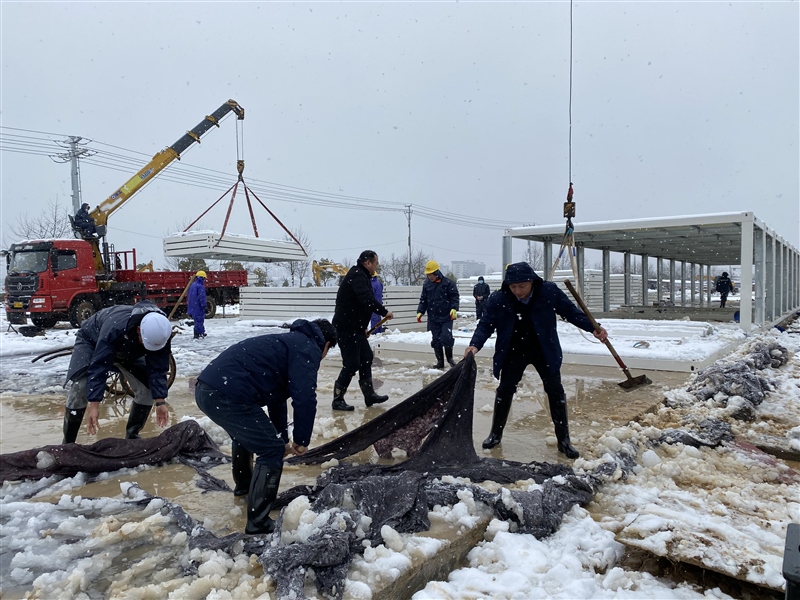 2月7日(農歷正月初七),冬雪紛紛、寒風瑟瑟,惡劣的天氣并未阻擋隔離點項目各參建單位的激情和干勁。中午12時40許,監(jiān)理單位在現場開展巡查,鰲峰建設在項目部組織施工會商工作。下午,國資集團黨員突擊隊、志愿服務隊主動請“戰(zhàn)”,步履匆匆赴現場鏟雪除冰。副區(qū)長王劍赴現場督查指導工作并對項目進度表示肯定。