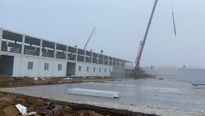 項(xiàng)目現(xiàn)場(chǎng),房屋班組持續(xù)推進(jìn)隔離區(qū)板房安裝,空調(diào)、熱水、家具班組配合完成室內(nèi)部分設(shè)施安裝,室外附屬班組利用晴好天氣搶建室外走道、圍墻,搶鋪綠化草皮……各功能班組交叉作業(yè),趕進(jìn)度、搶工期,全面梳理每天工作內(nèi)容,嚴(yán)把施工質(zhì)量、嚴(yán)管作業(yè)安全、嚴(yán)控施工進(jìn)度,為完成目標(biāo)任務(wù)而不懈努力。他們始終堅(jiān)守在自己的陣地上,多少個(gè)日夜里,他們忘記了寒冷、忘記了辛苦,甚至忘記了與家人團(tuán)聚的日子,只為完成肩上的使命,確保隔離點(diǎn)按時(shí)完工。