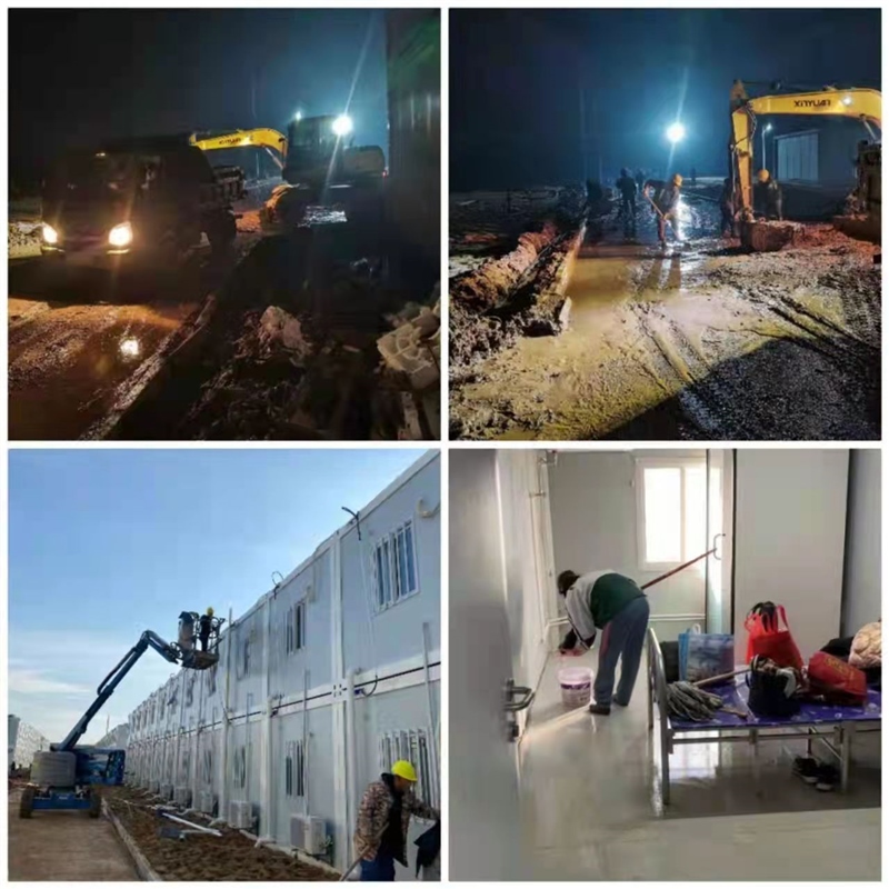 截至2月20日,準(zhǔn)備區(qū)折疊房、緩沖區(qū)活動(dòng)板房、隔離區(qū)打包房、污水處理點(diǎn)用房已全面安裝完成,室內(nèi)水電、家具、電器安裝近尾聲,室外附屬工程進(jìn)入最后修補(bǔ),隔離點(diǎn)項(xiàng)目保潔工作正在加班加點(diǎn)進(jìn)行。盡管有無盡的疲憊,但各參建方都毫無怨言,鏟泥漿、沖洗道路,清理垃圾……這些看似平常的工作,在這一刻顯得尤為神圣且自豪。
