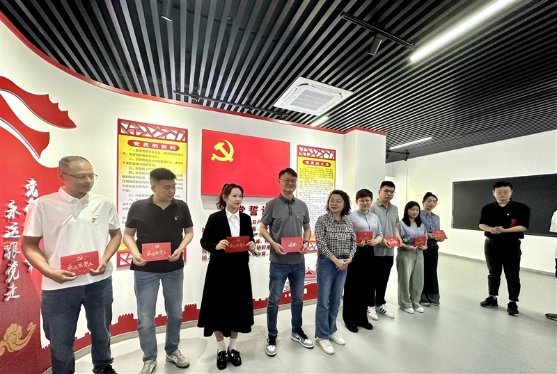 會(huì)前,集團(tuán)黨建園地內(nèi),董事長(zhǎng)楊靜帶領(lǐng)全體黨員重溫入黨誓詞,為上半年過(guò)政治生日的同志贈(zèng)送政治生日賀卡。